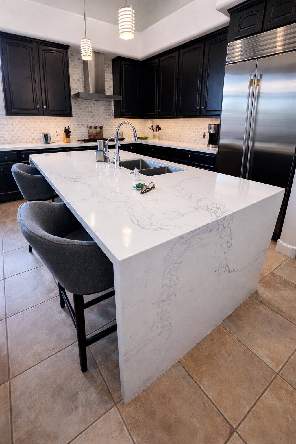 As any project goes we continued to move and add to the scope every step along the way as we also decided to tear up all of our 15 year old carpet, get rid of our travertine tile and remodel our master bath. Bottom line it was a large project.